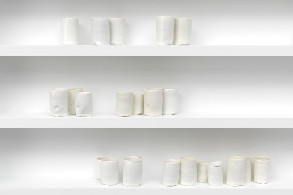 In response to an invitation by the Kunsthistoriches Museum, Edmund de Waal made a piece to hang in the Theseus Temple in Vienna as part of a series of contemporary installations. There is only daylight there, through the great double doors, and it comes in through the skylight and ebbs and flows across the walls, changes. On the wall opposite the doors are two huge vitrines. They hold hundreds of small porcelain vessels, some have a touch of silver on their rims or bases. Lichtzwang takes its name from the title of a book of poems by Paul Celan, a man for whom language was a necessity and a terrible response to silence. The vessels are placed like words on a page, or people passing through a building, held only by 'Lichtzwang' - the pressure, force, compulsion of light.