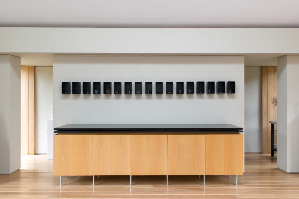 30 porcelain vessels in 17 aluminium and plexiglass vitrines